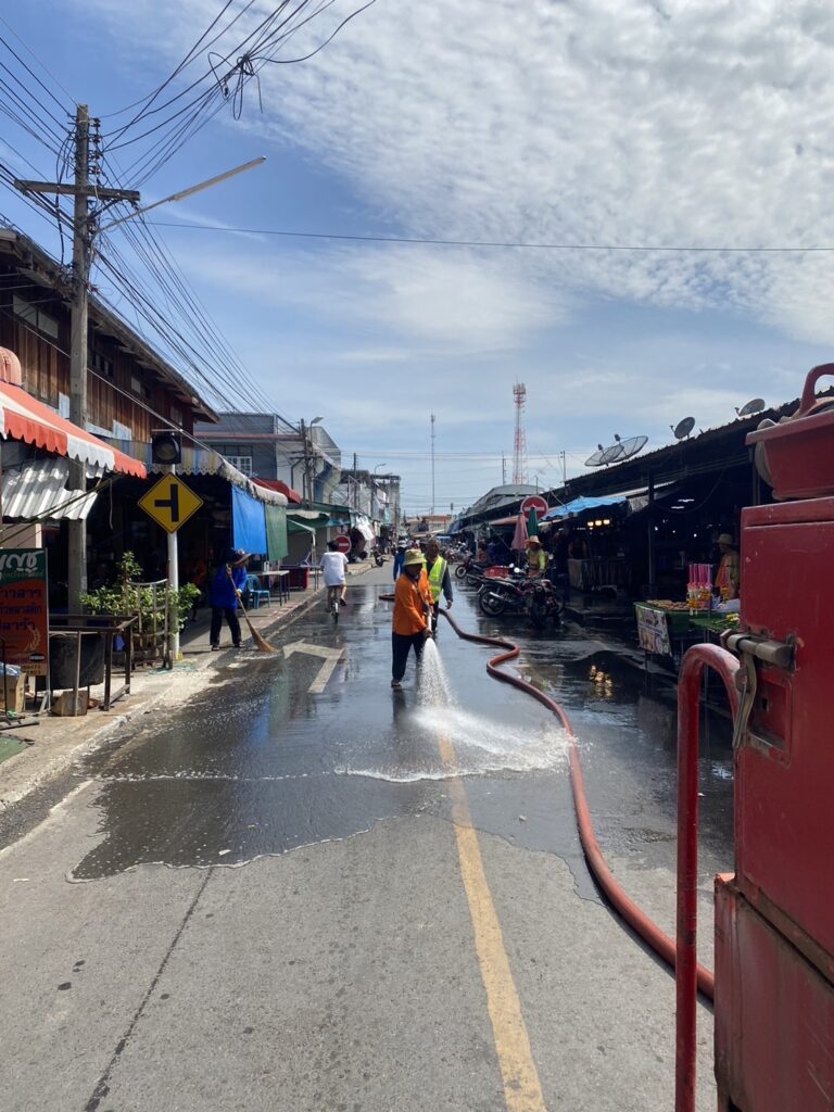 นายสุเมธ เฮงยศมาก นายกเทศมนตรีตำบลละหานทราย มอบหมายให้เจ้าหน้าที่กองสาธารณสุขและสิ่งแวดล้อม ร่วมกับงานป้องกันและบรรเทาสาธรณภัย ลงพื้นที่ดำเนินงานล้างทำความสะอาดตลาดสดเทศบาลตำบลละหานทราย ตามหลักสุขาภิบาลตลาดสด และตามมาตรการเฝ้าระวัง ป้องกัน ควบคุมโรคติดเชื้อไวรัสโคโรนา 2019 (COVID-19)